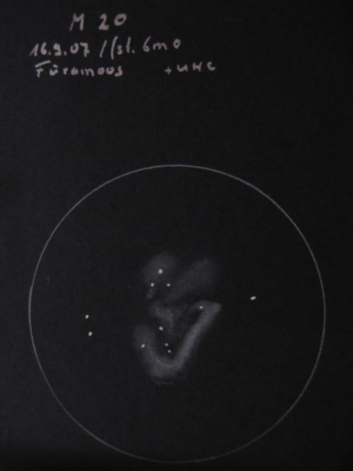 M 20 ist mit dem UHC schön zu sehen. Die Dunkelanteile des unteren Nebelanteils sehe ich das erste mal so deutlich.