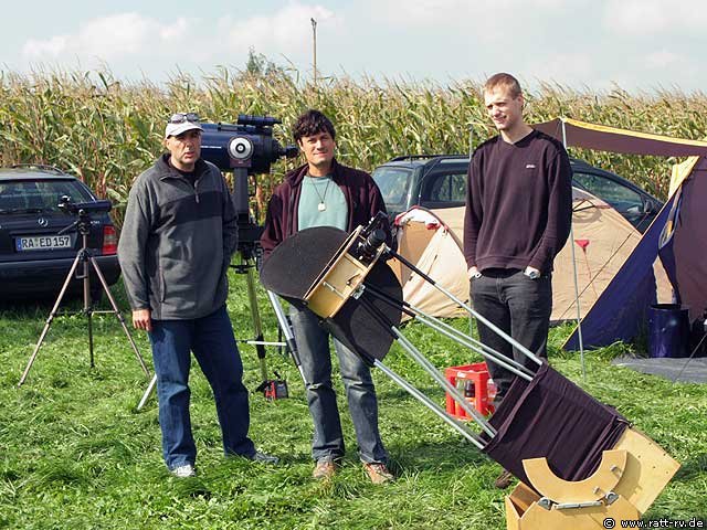 Ich hielt mich viel bei Reiner auf und konnte mir manchen Blick durch seinen 22 Zöller gönnen. Ein unvergessliches Erlebnis!! Gegen 23 Uhr passte ich 2 Stunden auf die schlafende Maya auf und Gitti kam so auch noch zu ihrer Beobachtungszeit. Bis gegen 4 Uhr beobachteten die Letzten. Feuchtigkeit beendete bei einigen Beobachtern die Saison vorzeitig.
