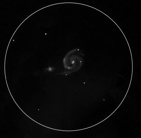 M 51 stand eigentlich gar nicht auf meinem Plan. Aber der Abstecher lohnte sich. Mit über 200 x hatte ich ihn noch nie im 16 Zöller beobachtet. Der Wahnsinn!!!! Die Spiralarme waren deutlich kontrastiert sichtbar. Ich versuchte eine Zeichnung!