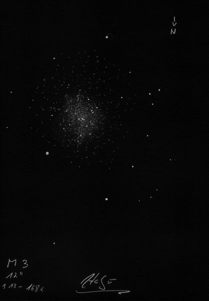 Bei beginnender Dunkelheit setzte ich noch meine schon begonnene Zeichnung von M 3 fort!! Mir fehlten noch die Umgebungssterne!! Mein erster Kugelsternhaufen mit dem 12 Zöller!! Eine wahre Herausforderung!!